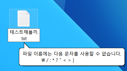 Windows에서는 파일명에 다음과 같은 문자를 허용하지 않는다.